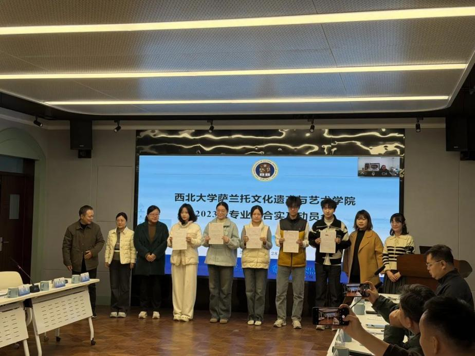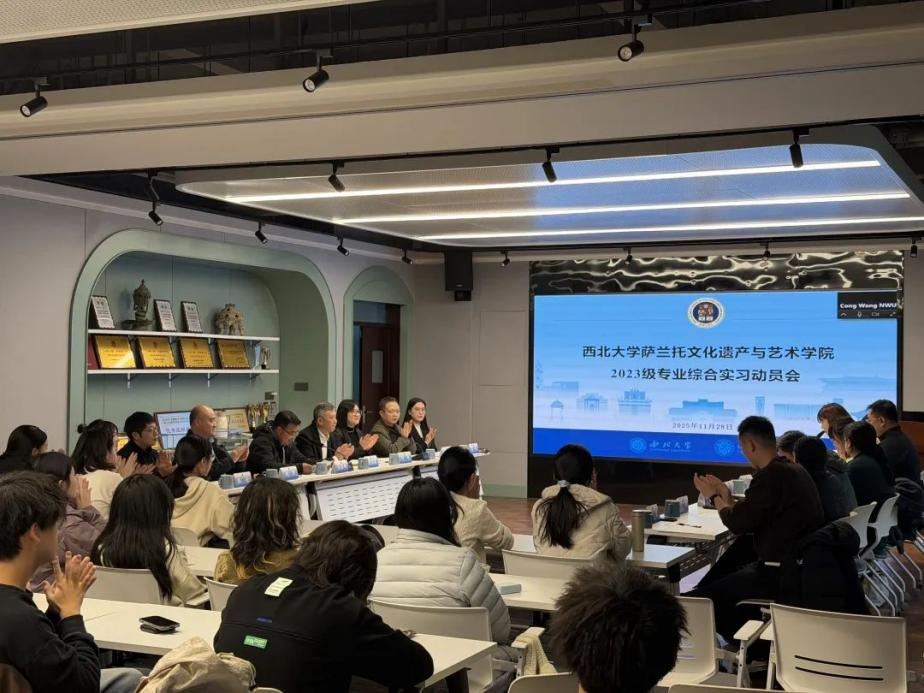 为扎实推进 2023 级学生专业综合实习工作,明确实习要求、保障实习效果,我院于2025年11月27日隆重召开专业综合实习动员大会。会议特邀陕西历史博物馆金紫琳、陕西省考古研究院贺章、陕西省文物保护研究院张芳、西安市文物保护考古研究院郭菲、伟德国际1949手机版博物馆张越等实习基地的文博单位代表,2023级综合实习的带队指导教师刘成、刘妍、赵星、兰德省、王聪,班主任代表陈欣老师,以及学院管理团队成员、2023 级全体学生与2022 级学生代表参会。动员会由豆海锋副院长主持。